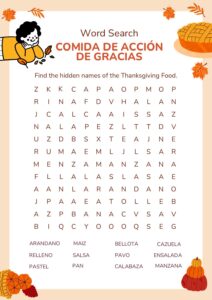 Thanksgiving Food Word Search